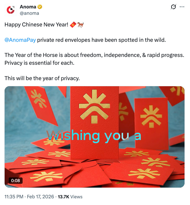 @AnomaPay’s private red envelopes are live, making this Year of the Horse a celebration of freedom, independence, and privacy
