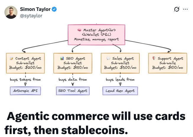 •@sytaylor - Agentic commerce will use cards first, then stablecoins