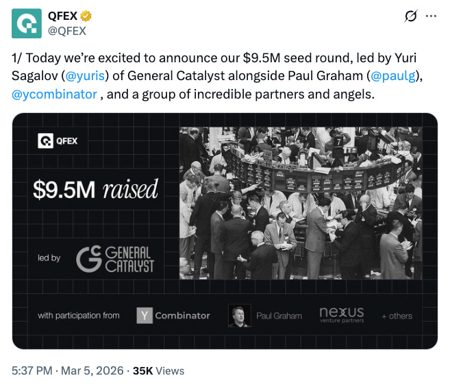 •@QFEX (CeFi) - 9.5m Seed led by @generalcatalyst