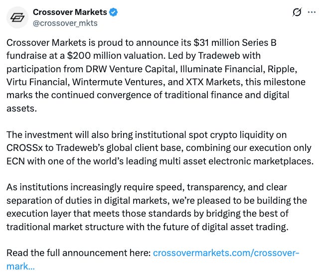 •@crossover_mkts (CeFi) - 31m Series B led by @Tradeweb